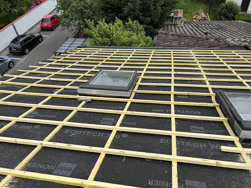 Rénovation de toiture à Toulouse Purpan : charpente bois, volige et tuiles plates Marseille