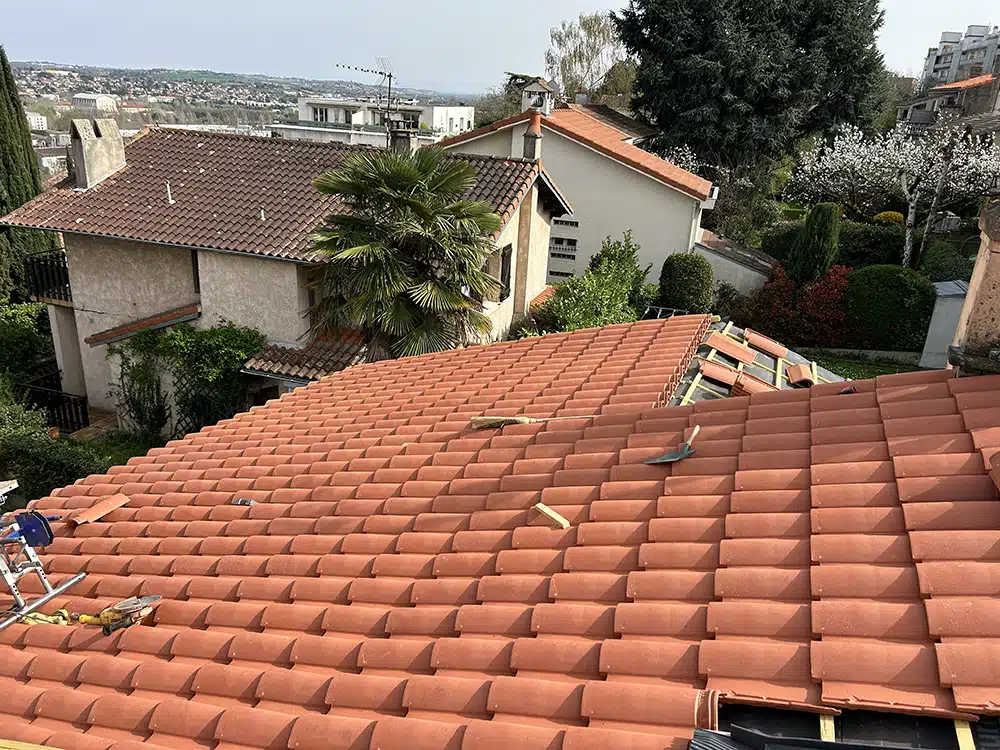 Sur ce chantier réalisé à Villeneuve Tolosane nous avons réalisé deux chantiers simultanément une rénovation de couverture complète avec une rénovation de faîtage, notre équipe a mené à bien une rénovation complète de toiture en seulement 1 semaines. Ce projet a mobilisé une équipe de cinq couvreurs qualifiés, garantissant à la fois la rapidité d’exécution et la qualité du travail. Les travaux ont été planifiés et livrés dans les délais impartis, avec une prise en charge globale allant de la charpente jusqu’aux finitions de couverture et de gouttières. Sur le deuxième chantier que nous avons réalisé simultanément, nous avons rénové le faîtage dépose du faîtage bétonné, pose d’un faîtage ventilé avec le remplacement des tuiles, partiellement sur la couverture c’est une réparation qui peut garantir une sérénité pendant 10 ans